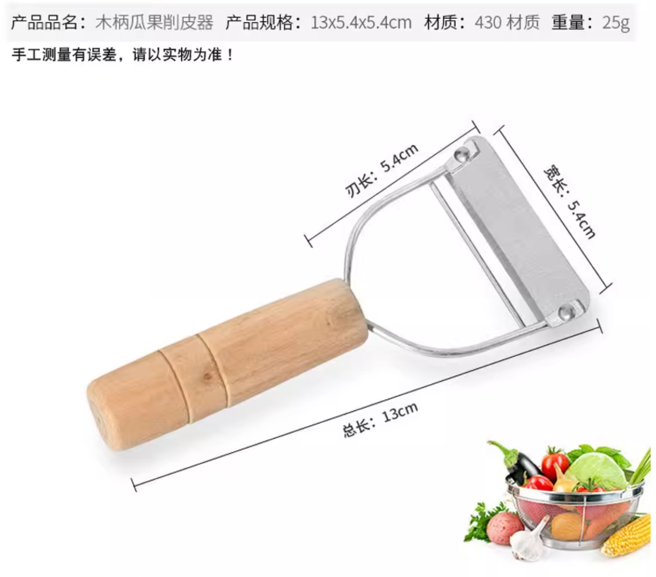 睿厨 XDP-M 木柄瓜刨不锈钢削皮器
